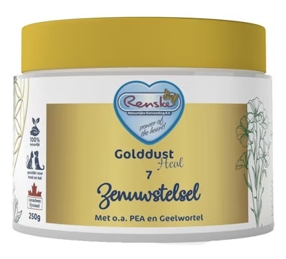 Golddust Heal 7 – Nervensystem ist ein 100% natürliches Ergänzungsfuttermittel für Hunde und Katzen, entwickelt zur Unterstützung eines gesunden Nervensystems und optimaler Koordination. Das Produkt enthält hochwertiges Leinsamen (Human-Grade) aus Kanada, reich an Omega-3-Fettsäuren und pflanzlichen Lignanen, angereichert mit Kurkuma und PEA (Palmitoylethanolamid).