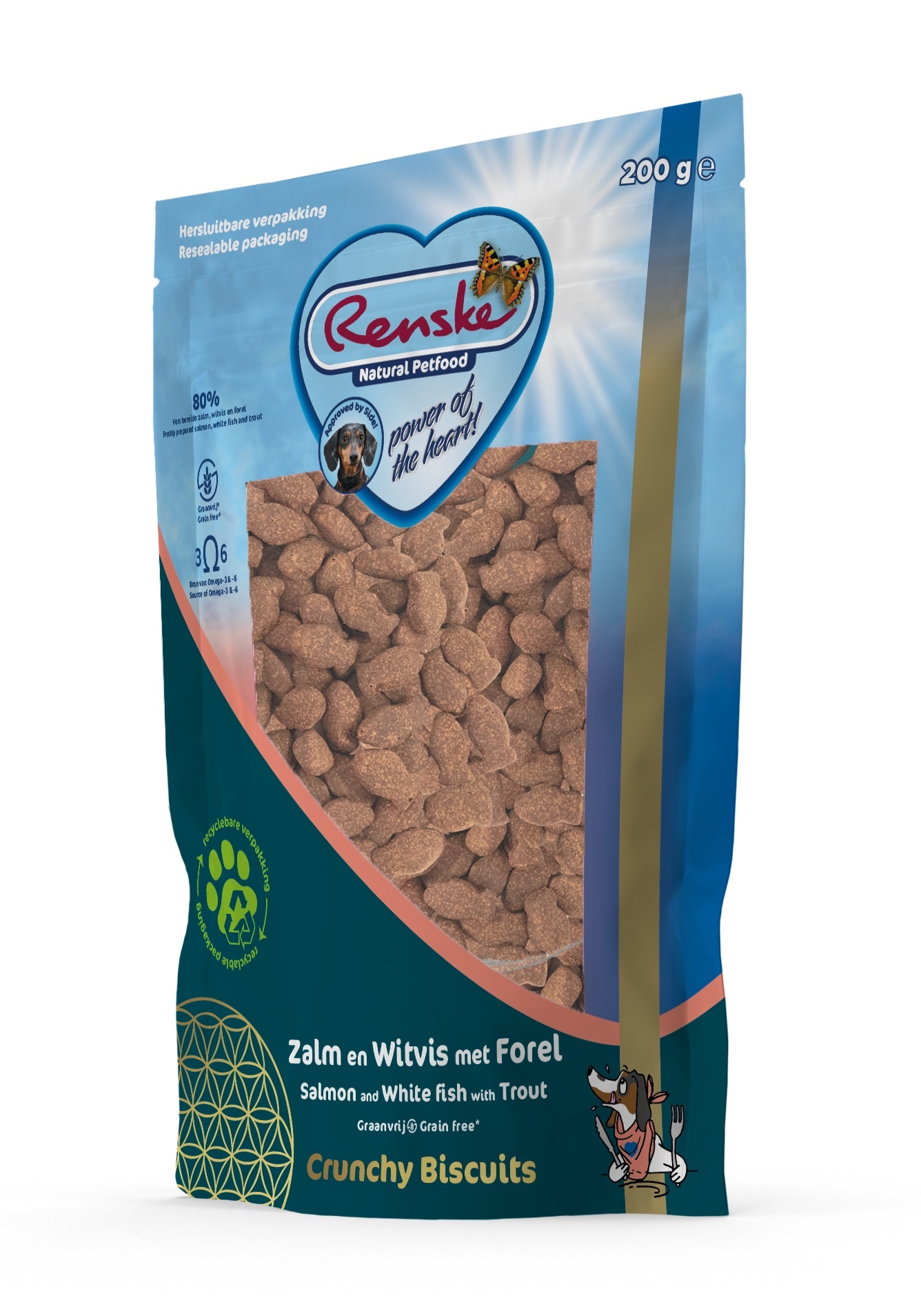 Renske Gesunde Belohnungen Crunchy Lachs und Weißfisch mit Forelle für Hunde 200 g