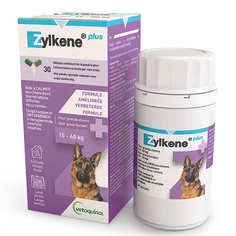 Zylkene Plus 450 mg – Natürliche Unterstützung bei Stress für große Hunde (15-60 kg) – 30 Kapseln