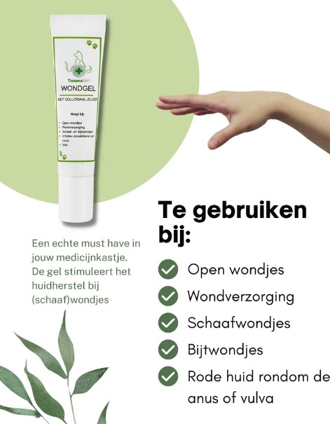 TraumaPet Wound Gel (15ml) accelerates wound healing and prevents inflammation. With colloidal silver, it provides antibacterial protection for various types of wounds. Easy to apply and ideal for fast recovery of your pet.