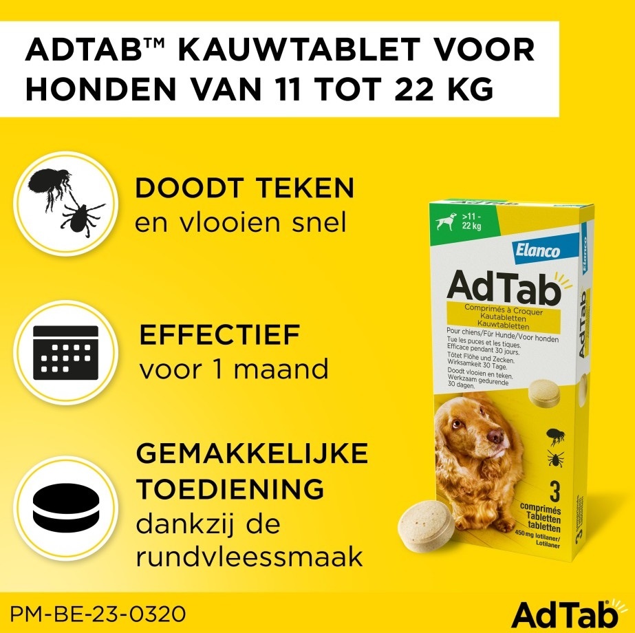Comprimidos Masticables AdTab Perro 11–22 kg – Protección Confiable Contra Pulgas y Garrapatas Durante 30 Días