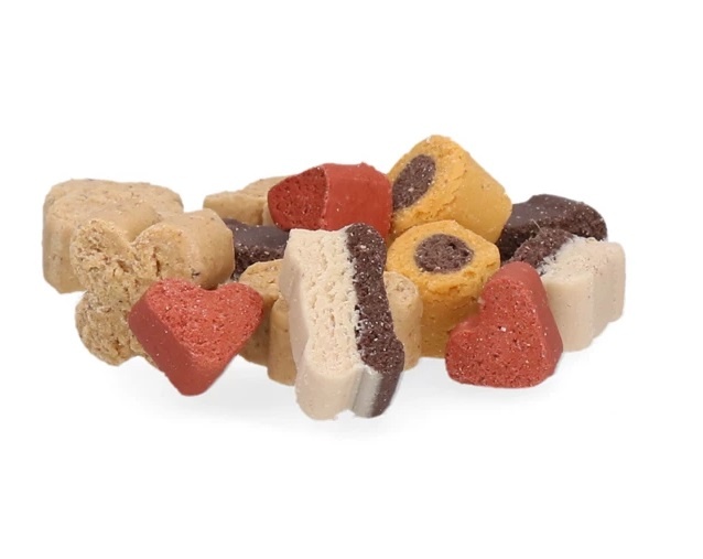 Las golosinas tienen forma de corazón (aprox. 2 cm) y no contienen aditivos innecesarios. Su aroma intenso ayuda a mantener la atención del perro – ideal para cachorros, obediencia o como tentempié.