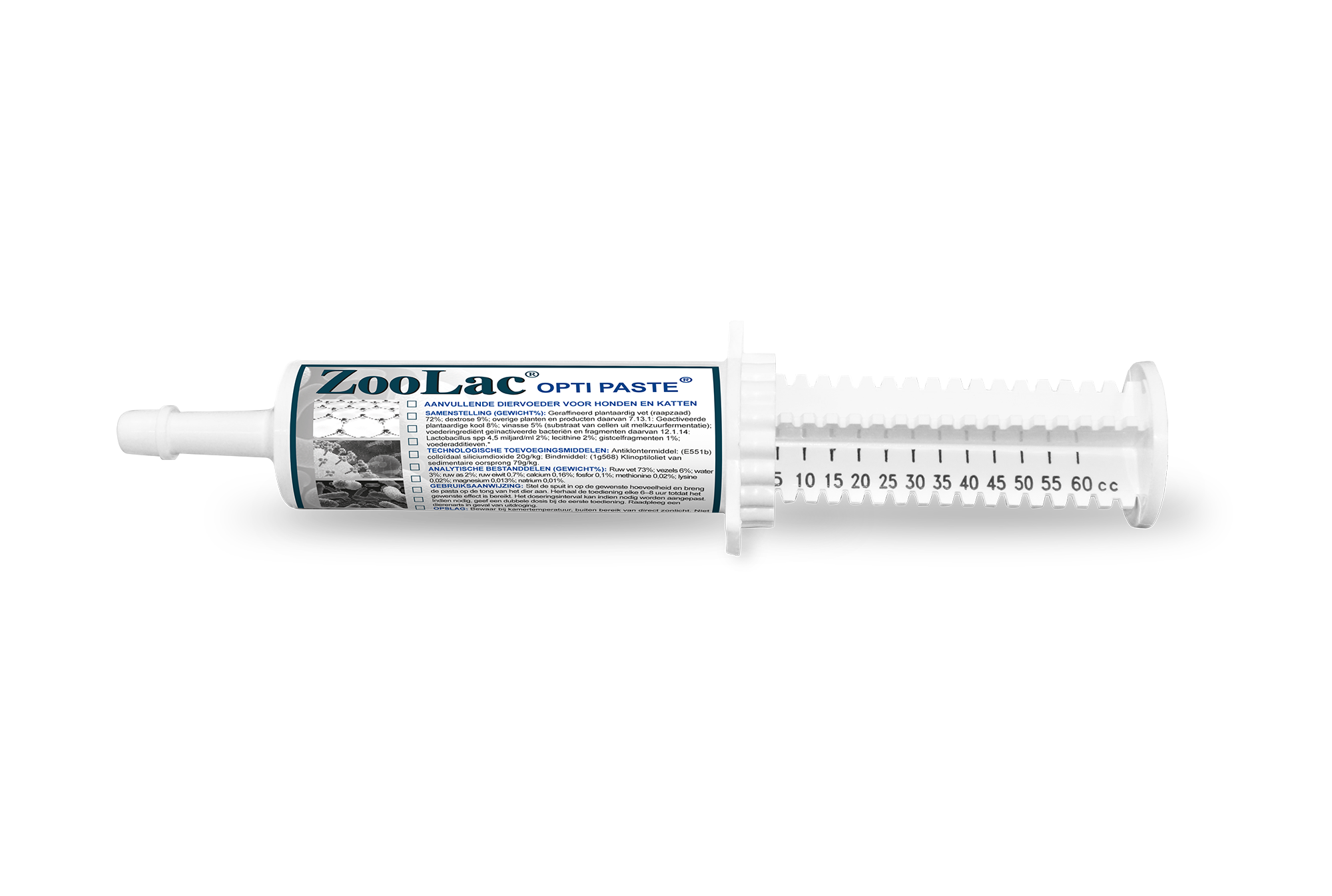 ¡No espere más! Brinde a su mascota la mejor atención digestiva. ¡Ordene ZooLac® Opti Paste 60ml hoy en Zoolac.nl y asegúrese de que su mascota se sienta mejor pronto!