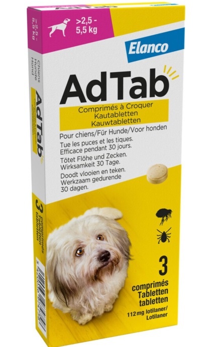 AdTab Chien 2,5–5,5 kg – Comprimés à Mâcher (112,5 mg Lotilaner)