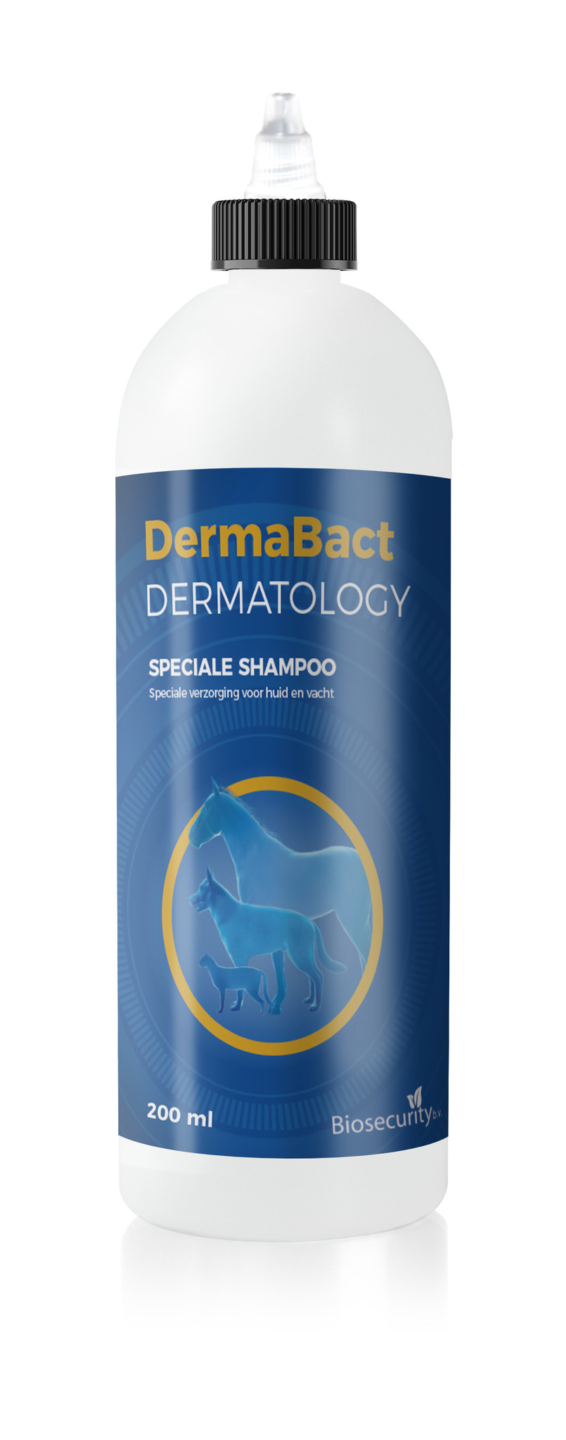 DermaBact est un shampooing doux et hypoallergénique, aux propriétés nettoyantes et désinfectantes ; il s’utilise en traitement complémentaire dans les cas d’infection superficielle de la peau et les cas mineurs de folliculite. (Label néerlandais)
