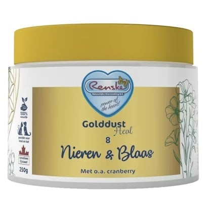 Golddust Heal 8 – Reins & Vessie est un complément alimentaire 100 % naturel pour chiens et chats, spécialement conçu pour soutenir la fonction rénale et vésicale. Le supplément est riche en acides gras oméga-3 provenant des graines de lin et contient des plantes précieuses telles que la canneberge et la verge d’or. Tous les ingrédients sont bio-énergétiquement parfaitement alignés avec le champ énergétique de votre animal.