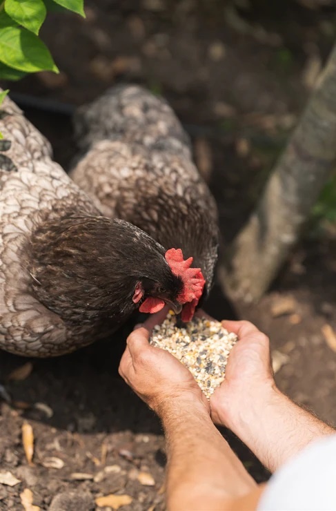 Pour les volailles en plein air, ce mélange peut être utilisé comme alimentation de base, complété par des granulés bio, des graines de tournesol ou des algues pour un apport en vitamines et minéraux.