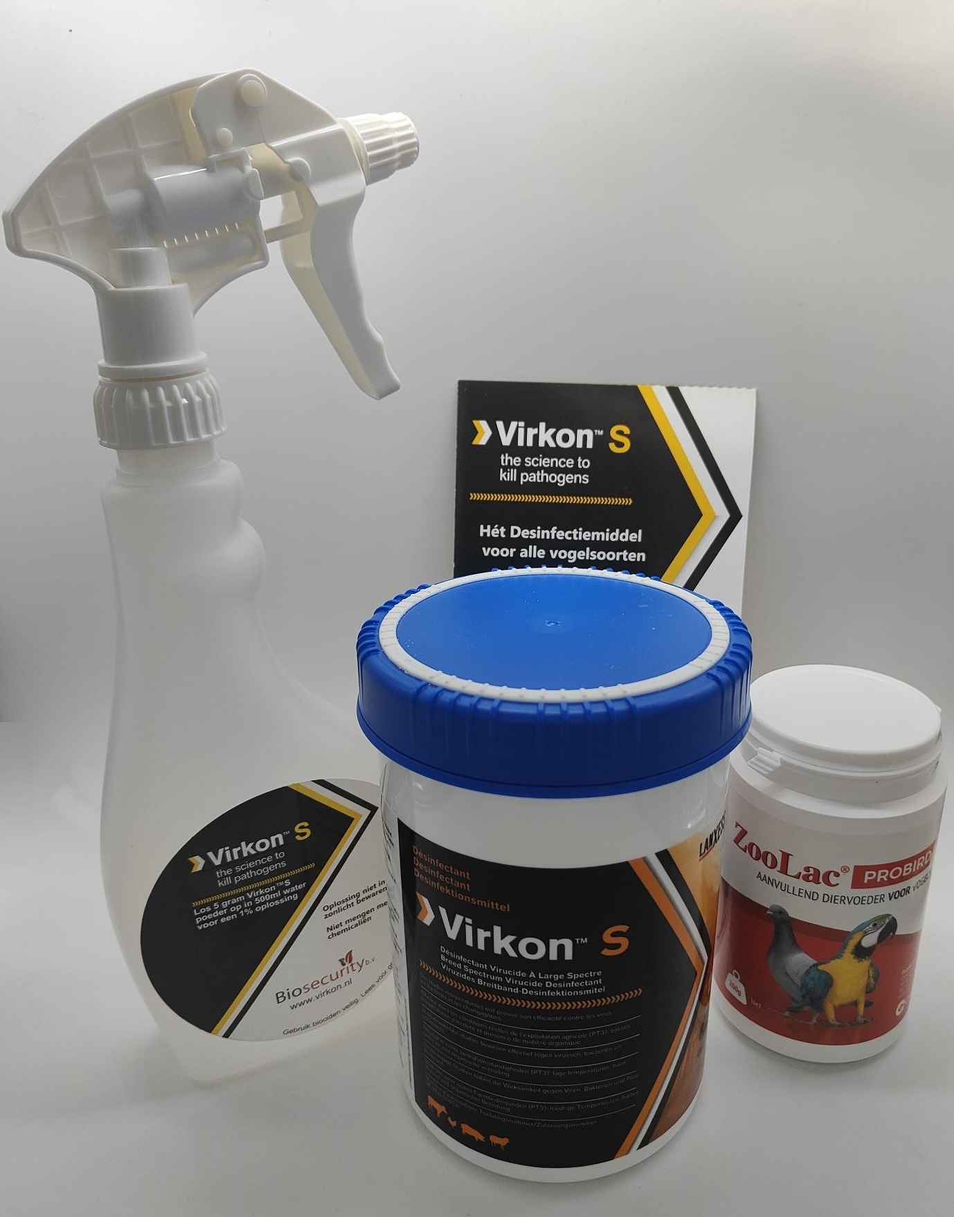 Zoolac - Le paquet Bird Value contient des probiotiques pour toutes les espèces d'oiseaux, un désinfectant VirkonS et un flacon pulvérisateur très pratique pour appliquer Virkon™S.